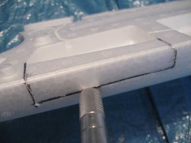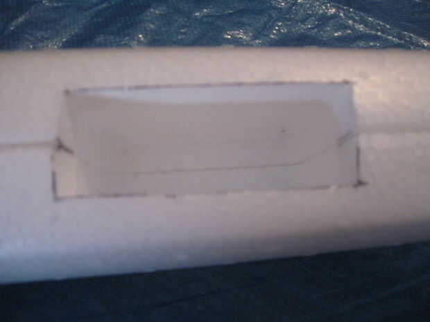 Es difícil cortar las áreas de explotación. Lo quiero hacer es cortar la parte inferior del avión tan cerca al ras con la parte interna de la pared y se puede. Se puede medir con una regla para asegurarse de que su corte la cantidad correcta... Sólo usé un pedazo de cartón:). Una vez que han cortado a los costados de la tapa de la fusalage, vas a querer unir las dos mitades. Asegúrese de que usted recuerde de qué lado va donde... quieres la escotilla para ajustarse perfectamente cuando el avión está volando.