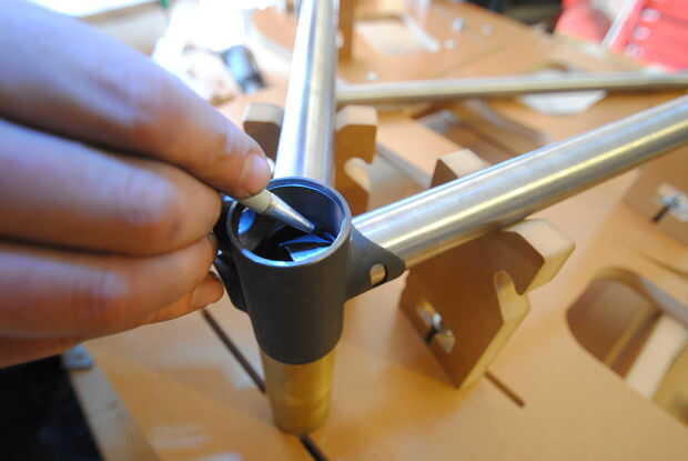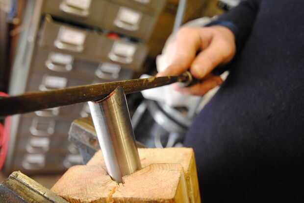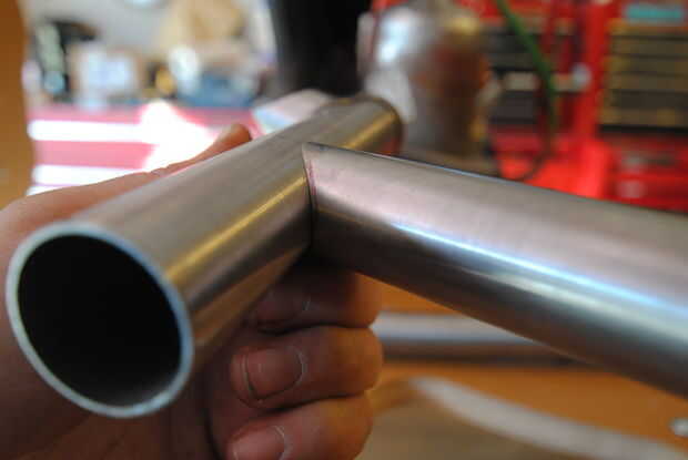 Ahora use una lima redonda media para terminar el perfil hasta la línea. Ser paciente y prueba de ajuste el tubo de acoplamiento a menudo para asegurar que el ajuste es correcto. Cuando haya terminado debe ser capaz de acoplar los tubos en el ángulo correcto con muy pequeñas diferencias entre ellos.