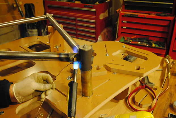 Configuración de la plantilla implica enfrentar una articulación en un momento y prueba de montaje de los tubos y lengüetas mientras que el ajuste donde están colocados los bloques de vee.