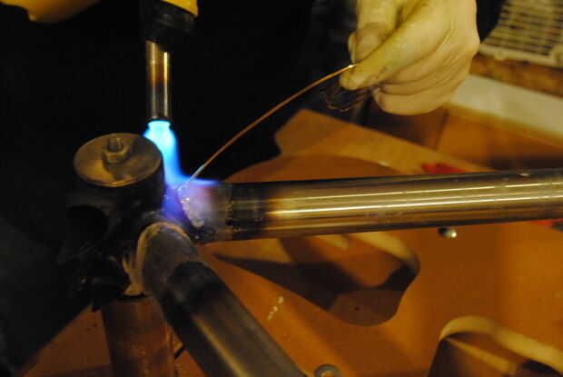 Un método para la práctica de la soldadura es comprar unos juegos de zapatas de bajo costo. Pasar por el proceso de limpieza para arriba y colocándolos en tubos de diámetro adecuado. Los empalmes de la soldadura y después de que enfríen mantenga un tubo en una prensa y utilizar el otro tubo para aplicar un momento flector a la articulación. El tubo no debería romper la articulación, sino más bien a lo largo de la longitud de la tubería de la articulación. También, puede utilizar una sierra para metales para sección de la articulación y garantizar la penetración correcta de plata.