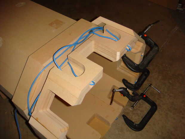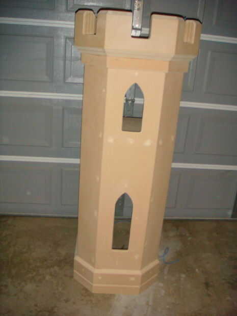 Las torres laterales parecen simples, pero toma un poco de paciencia para obtener los ángulos justo. Son imágenes de espejo haciendo una torre de izquierda y derecha y solamente único grueso para mantener el peso manejable para moverse alrededor. Esta fue mi primera estructura en forma de octágono y tomó tiempo conseguir cosas para trabajar. Todos los cables recorren la corona superior en cada uno.