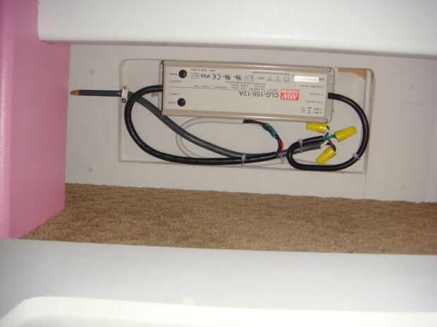 Opté por utilizar un sistema de 12 voltios porque la tensión inferior es más segura. También hay una amplia selección de opciones de iluminación. Elegí una fuente de alimentación de impermeable de 12 voltios de superbrightleds.com y la mayoría de las luces. He comprado las cadenas de LED de Costco. Hay 4 circuitos al castillo: