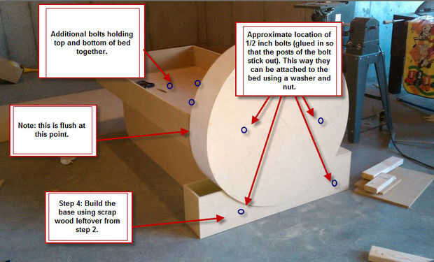 Utilizando la madera del paso 2, construir el parachoques. Bastante simple. Poner la cama con tornillos. Vea la foto para la colocación de perno.