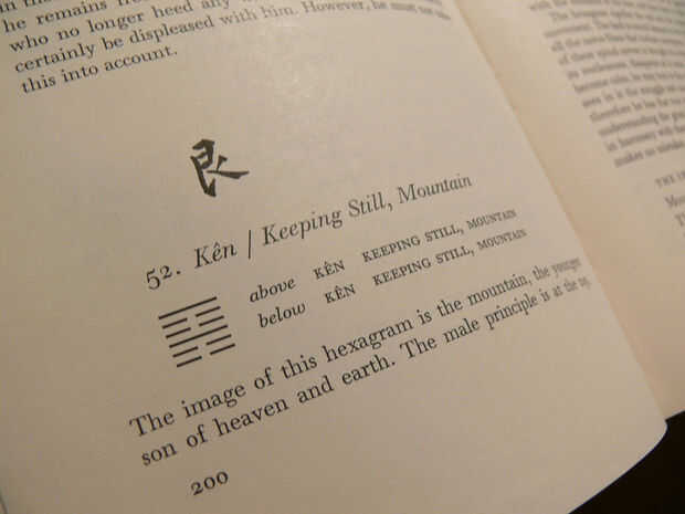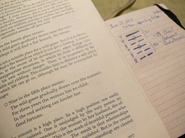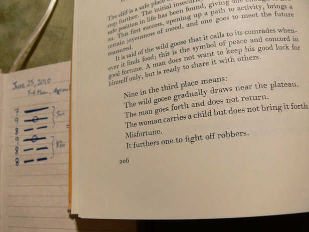Si hay una o más líneas móviles en el Hexagrama obtenido así, las palabras anexadas por el duque de Chou a la línea dada o líneas también deben ser considerados. Por lo tanto, sus palabras llevan el superscription, "Nueve en el lugar de x" o "Seis en el x lugar".