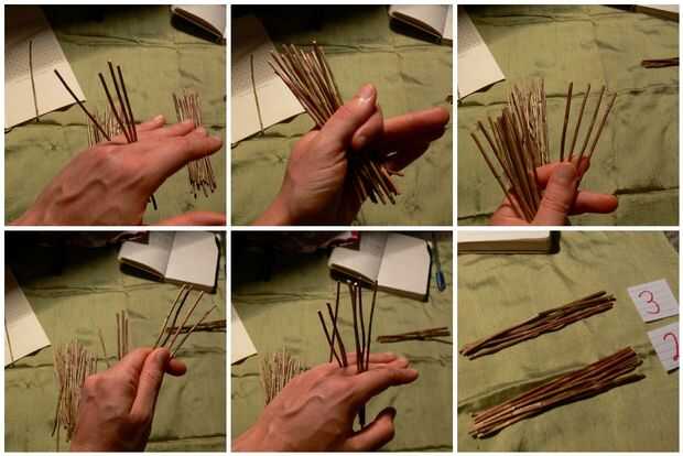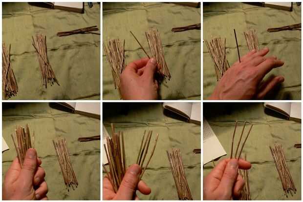 Ahora que sabemos cómo contar los tallos de milenrama por patas el resto es fácil, la repetición del movimiento y los pequeños sonidos de la milenrama tallos chiming juntos como son lanzados hacia abajo en la pila todos trabajan juntos para crear una atmósfera de meditación dinámica.