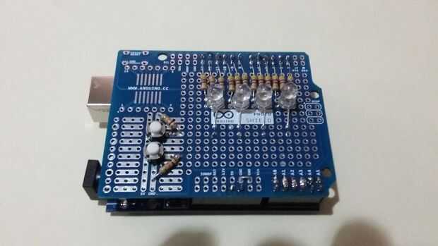 Introducir el PCB en el Arduino de nuevo, estás listo para pensar en instalar el Hardware de montaje del LED en el LED RGB.