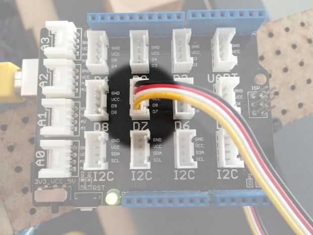 Próximo - Inserte el cable ranura en D7 (pin digital Nº 7) e inserte el otro extremo para el Sensor de ultrasonidos.