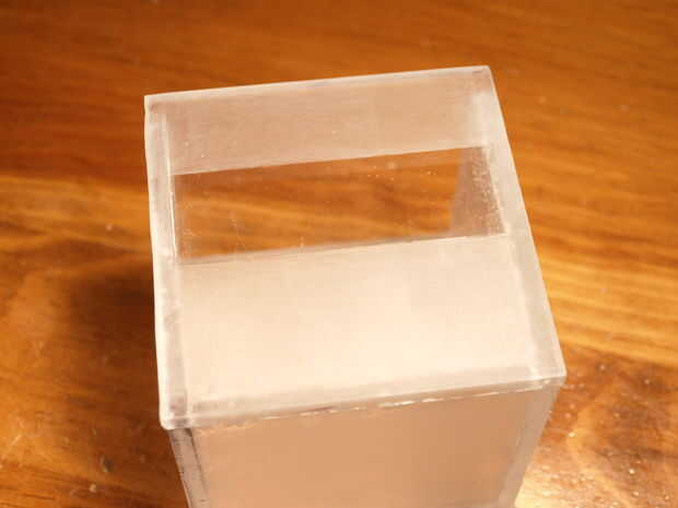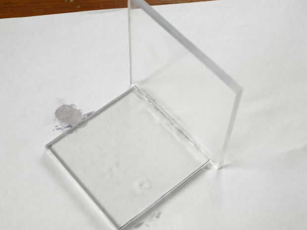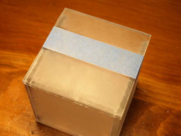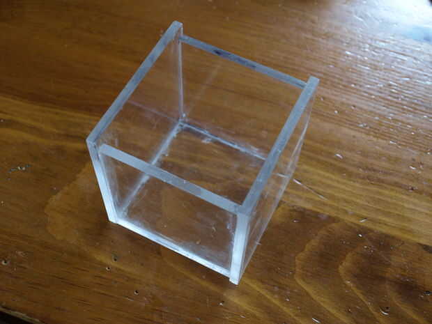 Unir todas las piezas como se muestra en la imagen. Originalmente iba a hacer una caja de claro pero rascó el acrílico mucho mientras yo estuve cortando así que decidí el acrílico de la helada. Puede hacerlo fácilmente con papel de grano súper fino arena. Hacer una ventana en el acrílico por grabar parte de un lado de la caja antes de lijado.