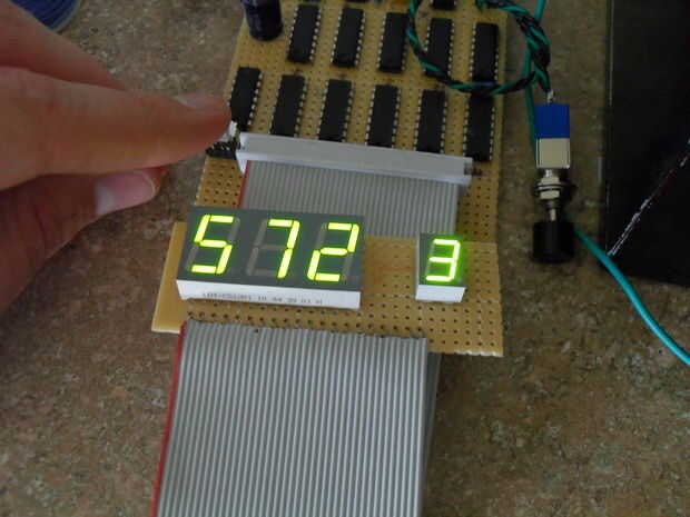 Cuando he probado la veracidad de mi contador con un generador de funciones de laboratorio, encontré que todas las mediciones fueron más o menos puntos. El contador de frecuencia funcionado exactamente como esperaba. Excepto para el el orden de magnitud más alta. Encontré que, medición de frecuencias superiores a unos 100kHz, el número es demasiado bajo por 10% o menos. La razón de esto tiene que ver con el uso de un cristal de 100kHz la señal de referencia. Hay un registro de cambio en el contador de frecuencia que realiza dos operaciones, uno derecha tras otro. Esto se hace para evitar que los contadores se borren antes de que las cuentas pueden ser trabadas a los codificadores de display de 7 segmentos. Sin embargo, hace un muy ligero retraso del orden de dos pulsos de reloj. Medición de altas frecuencias, este retraso se convierte en significativo, mientras que las frecuencias bajas aún se miden con bastante exactitud.