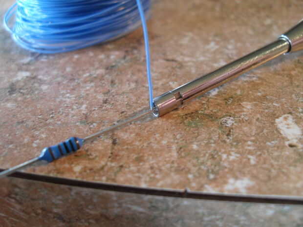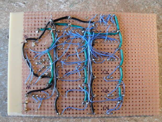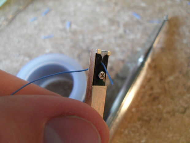 Para hacer todas las conexiones, recomiendo usar alambre que envuelve técnicas. Envolver las herramientas y el alambre alambre están disponibles en Radio Shack. Siga las imágenes para tener una idea de qué hacer. La idea básica es que nos gustaría ser capaces de hacer estas pequeñas conexiones poco constantemente y limpio, sin el uso de soldadura. Soldadura tiene varios problemas. En primer lugar, sólo desea aplicar calor suelda a ICs sensibles si es absolutamente necesario. En segundo lugar, para ICs de soldadura es más o menos permanente. ¿Alguna vez intentaste desoldar un IC? No quieres tener que hacer eso. Cuando todas las conexiones están hechas y la cosa funciona, entonces usted puede soldar los ICs.