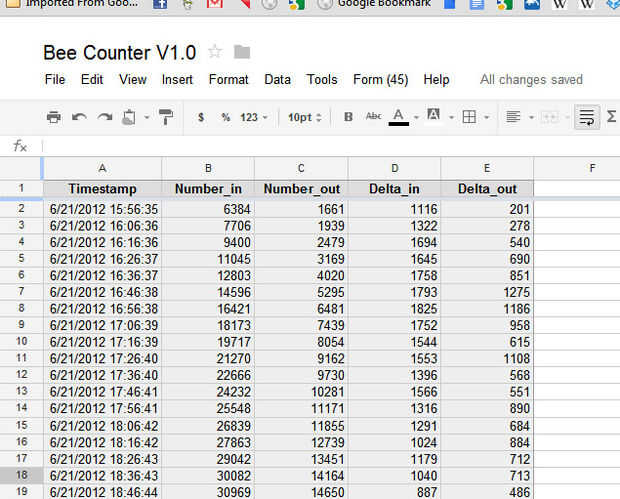 loadStrings(docs2); una vez había reunido todos estos bits entradas la hoja de cálculo! ... prueba tus propio bits en tu navegador... Tengo registro cada 5-10 minutos...