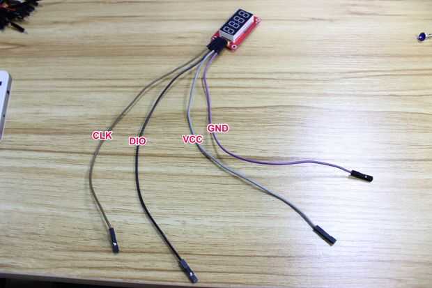 Por fin tenemos algo para mostrar la cantidad de mercancías, finalmente elegir que los 4 Bits módulo de pantalla Digitron tablero controlador que uso TM1637. Está conectado al protector del sensor con 4 cables de puente, el enlace de "CLK" para el "SIG" del puerto de D4, el enlace de "DIO" a lo "SIG" del puerto de D3. "VCC" vincular a "VCC" del puerto de D3, enlace "GND" a la "Tierra" de D3port. ¡Vale!