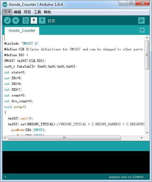 Pero tenemos que programarlo primero, abajo se encuentra los archivos de programa, usted puede downlod descomprimirlo, por favor recuerda poner el archivo llamado "DigitalTube" en la biblioteca y cargar el programa a su Crowduino - UNO, hará que nuestra aplicación tiene una función: Si algo bloqueando alguno de los tres switchs de sensor de infrarrojo, que va a hacer un recuento.