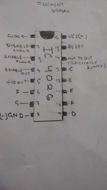 En los pines diagrama de los pines marcados A, B, C, D, E, F, G tiene que estar conectado a los segmentos correspondientes en la pantalla. También comprobar tocando los pines del 4026.