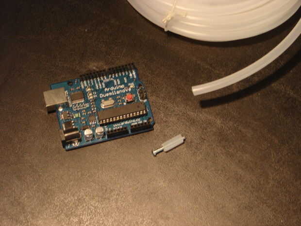 Encuentro que puedo hacer un separador razonable para el Arduino cortando un pedazo pequeño de un tramo de tubería