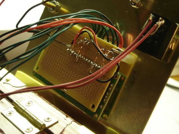La pantalla LCD que compré vino con encabezados que debían soldarse a la pantalla LCD. Después de lo cual, soldado el LCD a una choza de la radio PCB que podría a su vez conectar a la placa de latón. La imagen intenta mostrar esto. Mis conocimientos de soldaduras son amateur pero estoy mejorando. :)