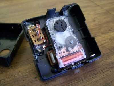 Necesitaba añadir un interruptor de encendido/apagado. Después de abrir el movimiento busqué espacio insertar un pequeño interruptor deslizante de un viejo escáner de la policía que haga. Ver la parte superior izquierda de la caja de movimiento en la foto.