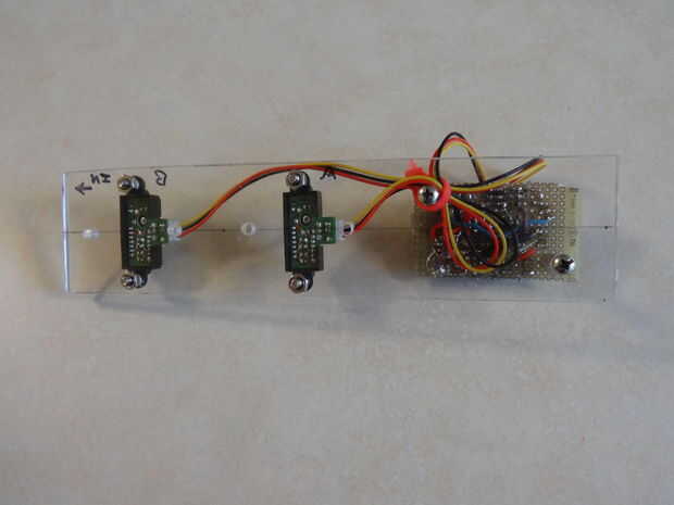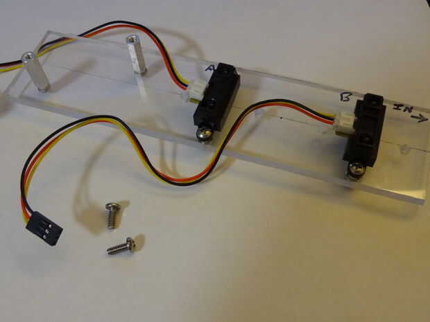 Conecte los sensores IR a las cabeceras masculinas en el PCB. Importa el orden; descubriremos cuando lo probamos o no tenemos que cambiar los cables del sensor.