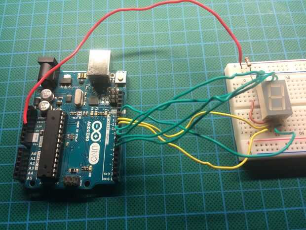 En este paso vamos a conectar el Arduino con nuestra pantalla con pernos digitales 12 a 6. Para comenzar a conectar la clavija C de la pantalla digital 12 en el Arduino. Continuar conectando pin D digital 11, E con 10 G 9, F 8, con 7 y por último B con 6. Así que resumiendo tenemos: