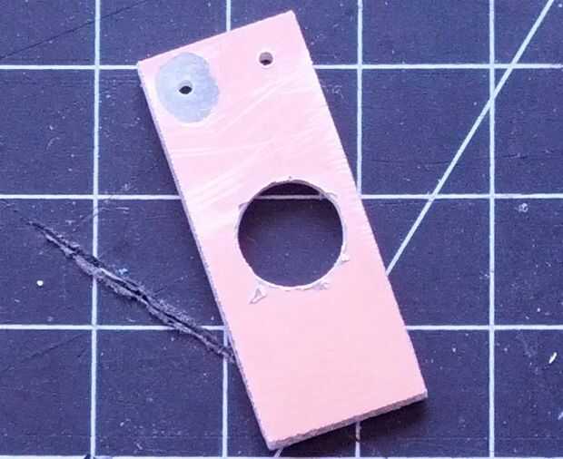 he tenido los mejores resultados hacer cada sensor individualmente utilizando un solo lado PCB en blanco. Corte y presentó cada uno para caber en el orificio correspondiente en la cubierta de la caja. Cada sensor de la placa tenía un pin header macho soldadas a él y un orificio en el centro del interruptor LED a la luz a través. Las placas de sensor se fijaban a la cubierta de la caja con pegamento caliente.