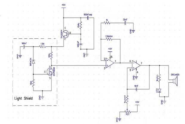 Siga el esquema prestando mucha atención a las conexiones de los transistores y IC dual op-amp.
