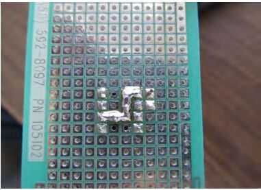 Como se puede ver en el esquema, los pines 1 y 6 son atados juntos. Los dos pasadores de debajo de la Junta de soldadura es la mejor manera de tener una conexión limpia y ahorrar espacio al mismo tiempo. Esta técnica se utilizará a lo largo de la estructura para mantener todo el circuito compacto.