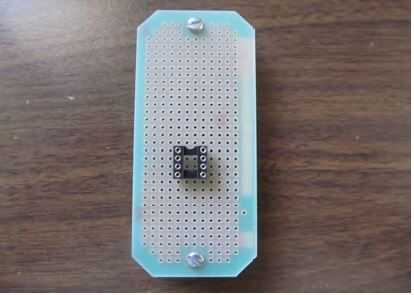 Puesto que hay pocos componentes que necesita para acoplarse a este pequeño protoboard. posicionamiento de cada componente es importante. El zócalo del IC debe ser alrededor de la mitad de la Junta ya que los pasadores necesitan acceder a como de la soldadura. Asegúrese de que la muesca del conector es colocada correctamente como quieras IC a colocarse.