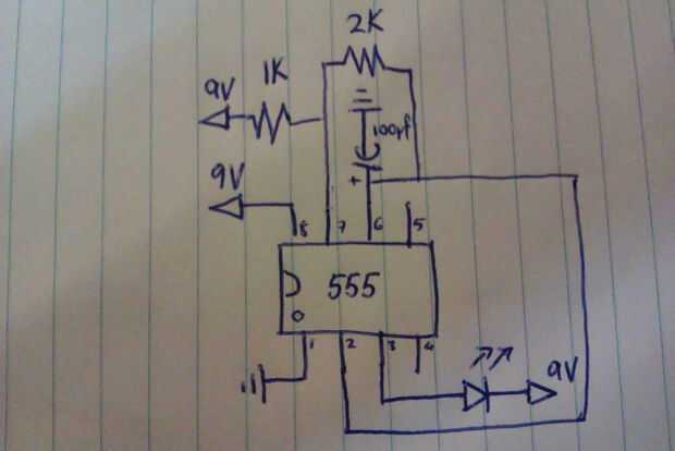 Este circuito de temporizador paso cubre el 555 simple que proporciona un rojo intermitente LED en la parte frontal del teclado. Simplemente siga el diagrama de circuito y soldar todos los componentes entre sí. La resistencia de 2K puede ser intercambiada por un valor mayor o menor dependiendo de qué tan rápido quieres el LED parpadeando; cuanto mayor sea el valor más lento el abrir y cerrar. Recomiendo poner el circuito en un protoboard antes de soldar para poner a prueba todo el trabajo como se esperaba. Una vez todo soldado juntos he añadido algunos pegamento caliente para prevenir cualquier contacto entre los pines del Temporizador 555.