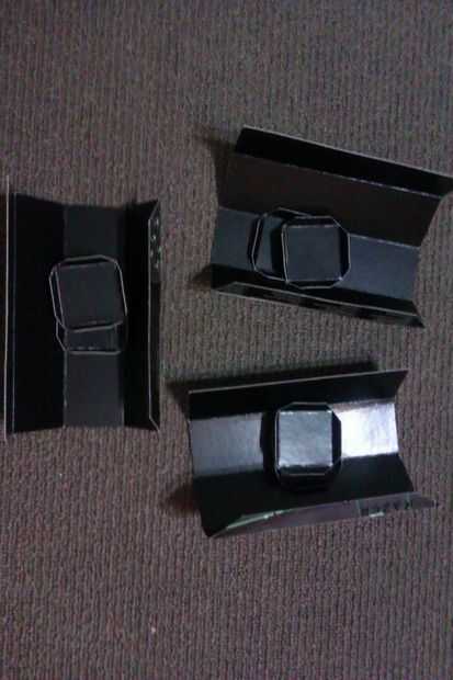Finalmente con una pistola de pegamento caliente, pegar un cuadrado en la parte superior e inferior de cada rectángulo antes de cerrar la forma y pegando cerrado. Ahora debería verse como imagen 7.