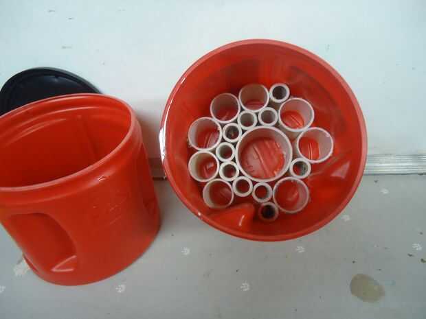 1. Comience colocando los tubos en el recipiente de café hasta que toda la tubería se llena el contenedor de pvc.