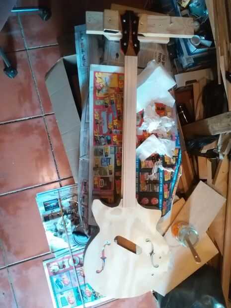 Una vez completo el tablero del traste, he marcado en el cuerpo donde tengo que cortar un lugar por el extremo ancho de la Junta de traste para adaptarse. No hay ninguna foto de mí hacer este corte, pero usted puede ver la diferencia en las fotos del siguiente paso.