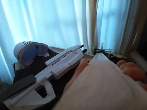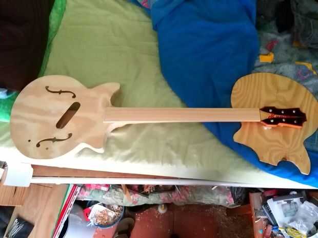 Solía planos de madera en los lados de mi tablero del traste afilan ligeramente hacia un extremo, para que mi 'alas' iría hasta el final, entonces 220 grano de lija de grano 800 por unas horas, para dar a la superficie de la madera un radio. Si eres más afortunado que yo y no tienen que hacer adiciones a su primera pieza de madera, necesita de la forma cónica para encajar al ras con el cuello. Si no estás seguro de lo que debería ser el radio, busca guitarra traste tablero radio cortes transversales en línea. Lo varían de instrumento a instrumento, elige un radio que usted piensa que adapte a tu estilo de jugar. Debe haber sin baches o huecos en la superficie cuando se mira en la parte superior y manténgalo como se muestra en los cuadros 3, 4 y 5. La madera es brillante en estos cuadros puramente de la lija fina, no hay aceite o barniz en él.