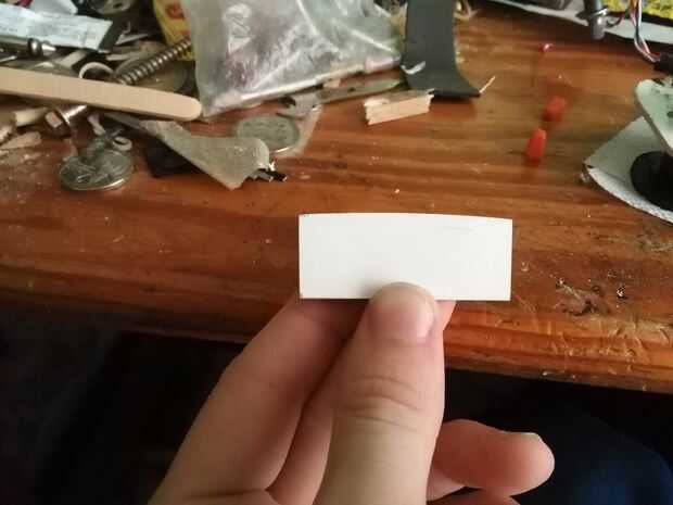 El puente sí mismo es sólo un pedazo de plástico 3mm de espesor, que corté a las dimensiones de 65 mm por 16 mm. Dio la parte superior un radio pequeño, pero las cuerdas deben ser en una línea relativamente recta cuando en sus posiciones finales. Después de usar un lápiz para marcar el centro, medido a los 6 puntos donde deben ir las cuerdas. Las cadenas de todos se colocaron 9 mm aparte en el puente. Usé una lima de mano para hacer una marca pequeña pero visible donde cada una de las cadenas debía colocarse.
