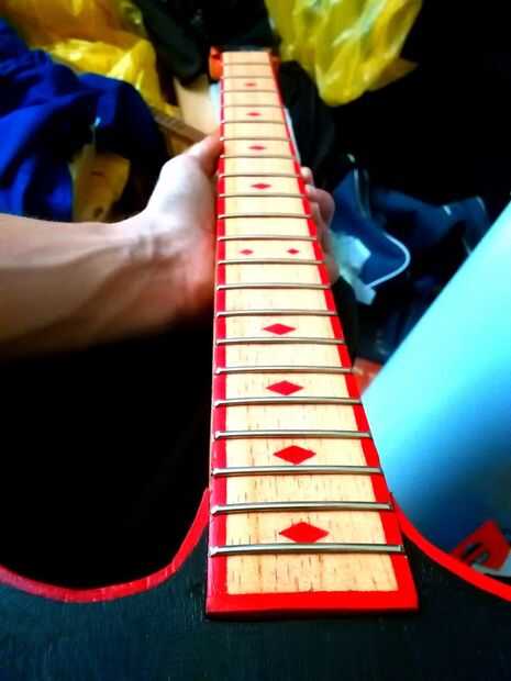 Tomé cada traste uno por uno y encolar cada parte posterior en el mismo lugar otra vez. Luego hice más correctivas luz tocando percusión para que encajen correctamente y cuidadosamente otra vez. Esto también llevó tiempo, pero era mucho más rápido de lo que habría sido si no lo hice la primera vez.