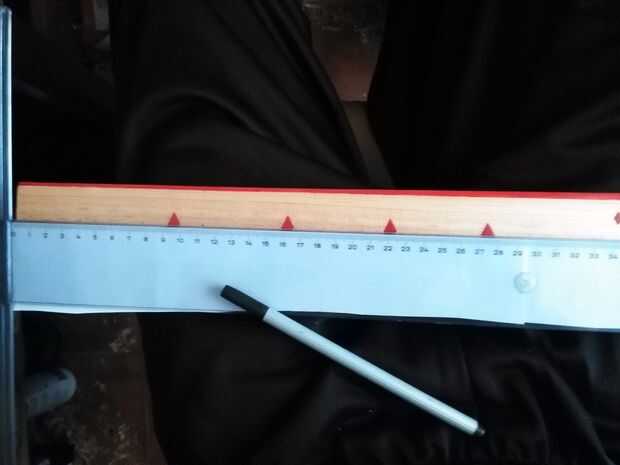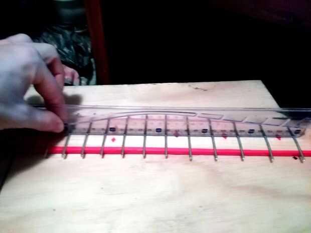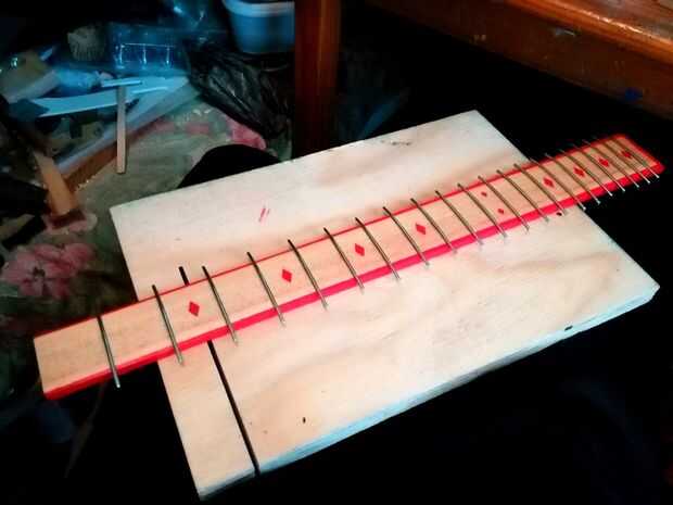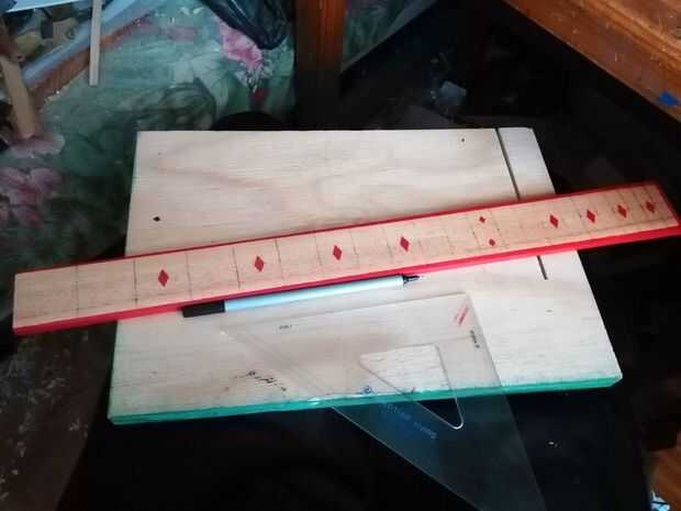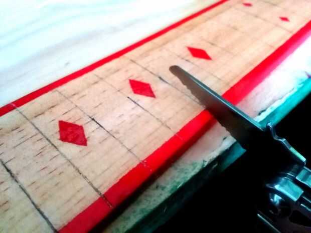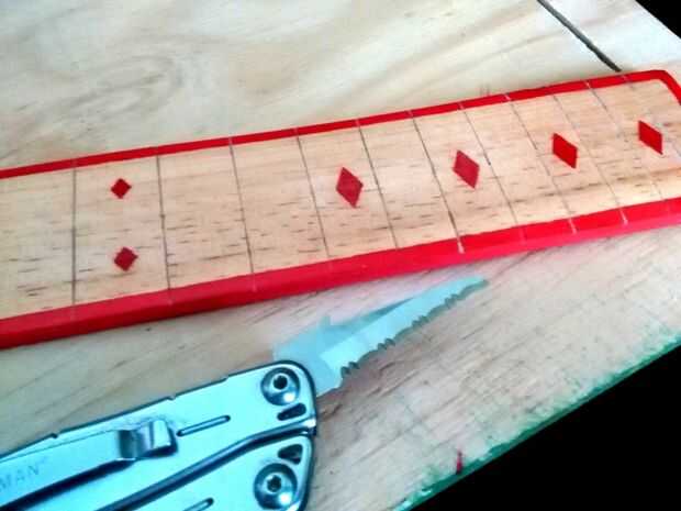 Una vez que las posiciones del traste todos bien marcadas y no sin errores, puede proceder en el siguiente paso (miedo), que es surcos de corte para sus trastes para colocarse en.