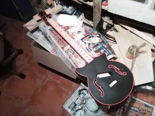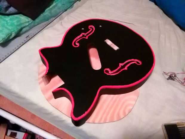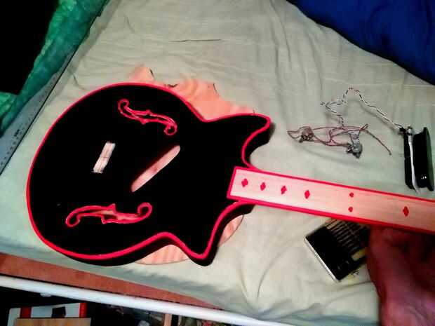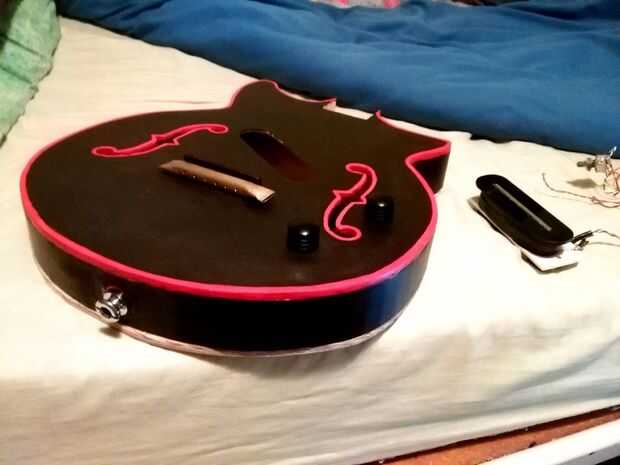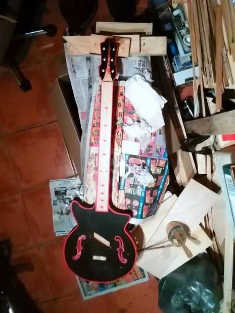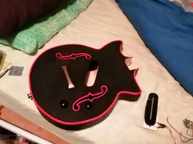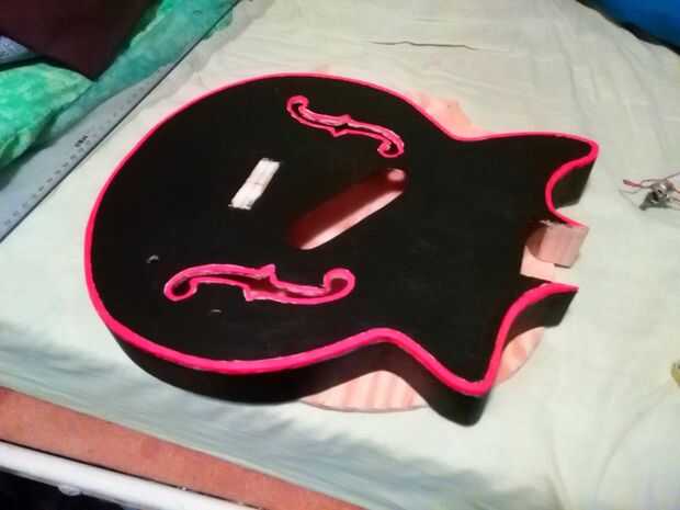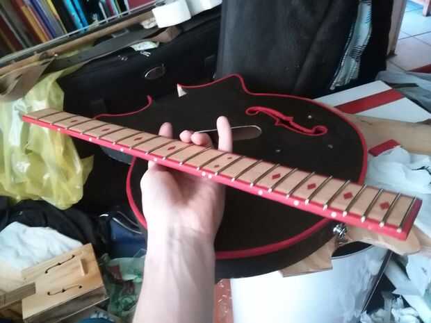 Yo entonces prueba había equipada todo más o menos juntos. El cuello, el cuerpo y el tablero del traste para asegurarse de que todo podría caber perfectamente y sin espacios desagradables. Después de un recorte aquí y allá hasta que yo estaba contento con él, pasé sobre el tablero del traste otra vez.