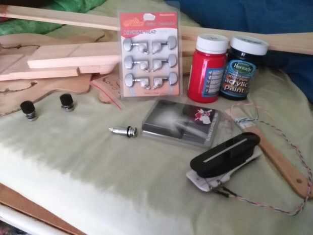 NB: Se necesita un amplificador y un cable para enchufar con su guitarra. Te recomiendo conseguir o pedir prestado uno antes de construir la guitarra, así que usted puede probar toda la electrónica correctamente antes de cerrar la guitarra.
