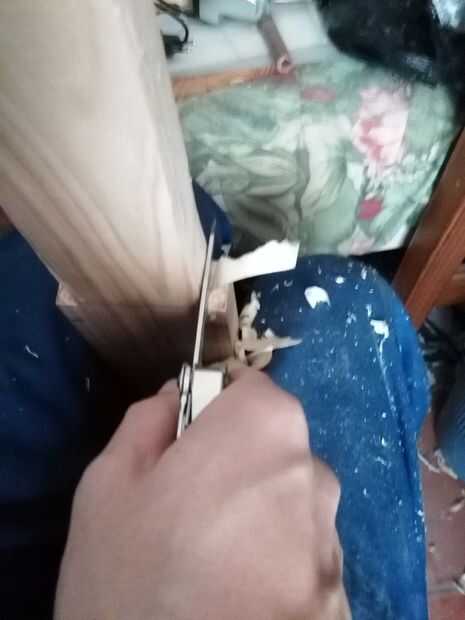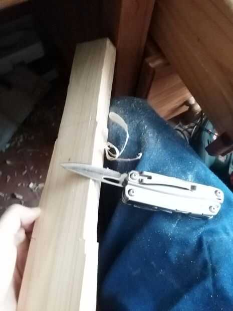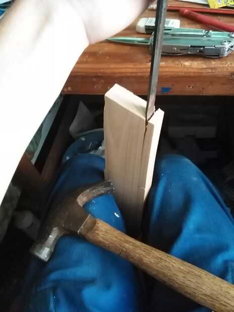 Hice cortes en la madera de los lados, usando una sierra para metales, a la profundidad deseada. Luego usé un cincel que hace de una pieza de un escritorio en high School secundaria, romper estos segmentos de madera partiendo apagado. Las imágenes de explican esto mejor que yo.