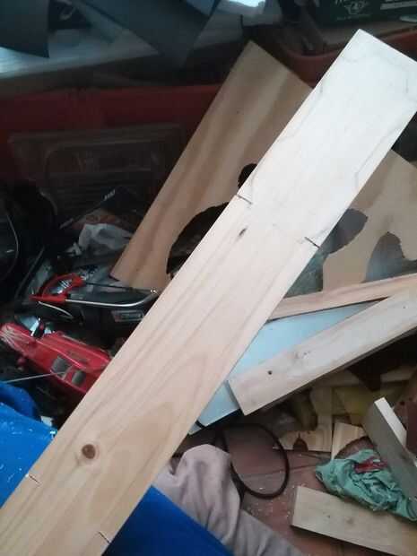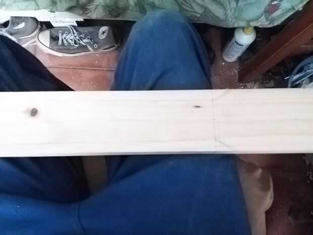 He usado el tablón de pino recto tenía, también de un contenedor de basura y tenía un pequeño nudo en ella pero era lo suficientemente pequeño como para no afectar perceptiblemente la fuerza de la madera.