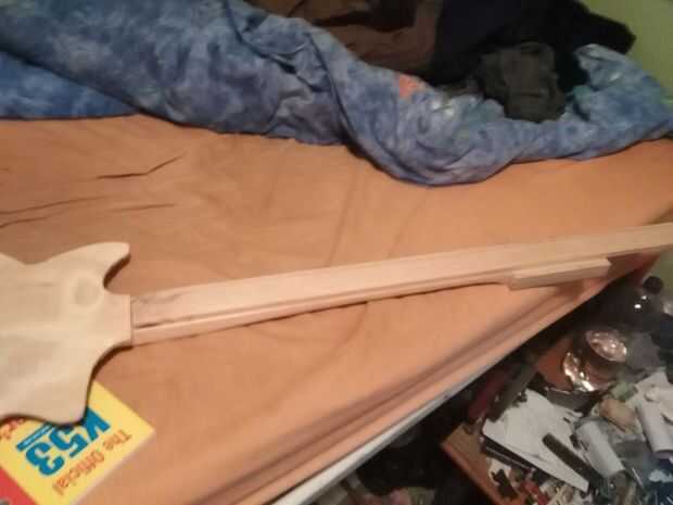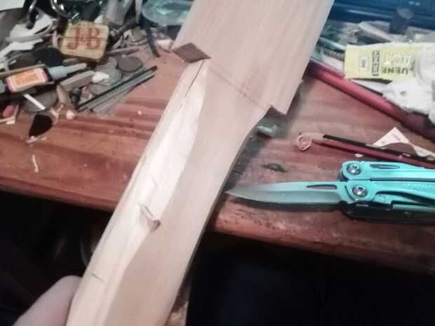 Comenzó con un metro de un tablón largo y cortar a una longitud de 750 mm. 640 mm formada por la cabeza y el cuello, y el resto montado dentro del cuerpo hueco.
