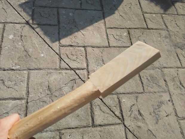 En este punto parecía como una paleta, por lo que necesitaba para darle su forma final. Me mide mi modelo de ordenador 3D y re-dibujó la forma que había diseñado en la superficie de madera. Luego usé la sierra y mi cuchillo otra vez a tallar trozos de los lados. Terminé usando el cuchillo más plano de la madera poco porque eran demasiado pequeños para acceder con él a los lados. Entonces, utiliza el taladro con el corcho de papel de lija en él para hacer los bordes redondeados limpia y lija la cabeza con papel de lija de grano 220.
