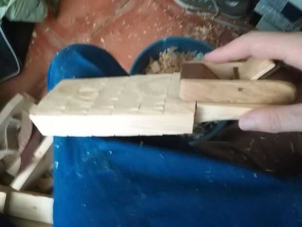Una vez que la mayoría de la madera sobrante se elimina, debe terminar como escaleras. Ahora, con dos planos de la mano (yo usé el casi exclusivamente) trabajó otra vez "hacia abajo" de la cuesta y se deshizo de los pasos en la madera. Tomó unas cuantas horas de cepillado, y también utilizo mi cuchillo para algunos trozos persistentes que fueron difíciles de plano a través de, pero después de cepillado lo que Lisa la cabeza sólo se requiere un mínimo lijado.