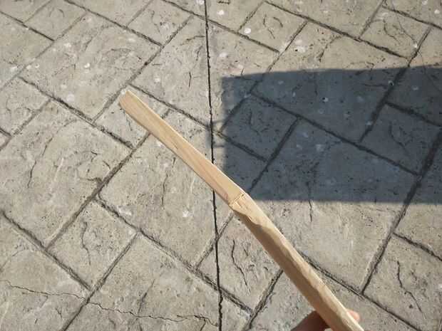 Entonces, utilicé mi cincel casera otra vez como una barra del cuervo, para quitar trozos de madera fuera de las líneas de lápiz. Es muy importante dividir la madera "hacia abajo" de la "pendiente" de la cabeza, porque si tuviéramos que dividir desde abajo hacia arriba, crearía una división en la madera que necesitamos conservar. Esto es difícil de explicar con palabras, pero el cuadro 7 describe lo que quiero decir.