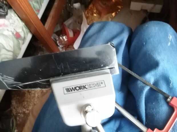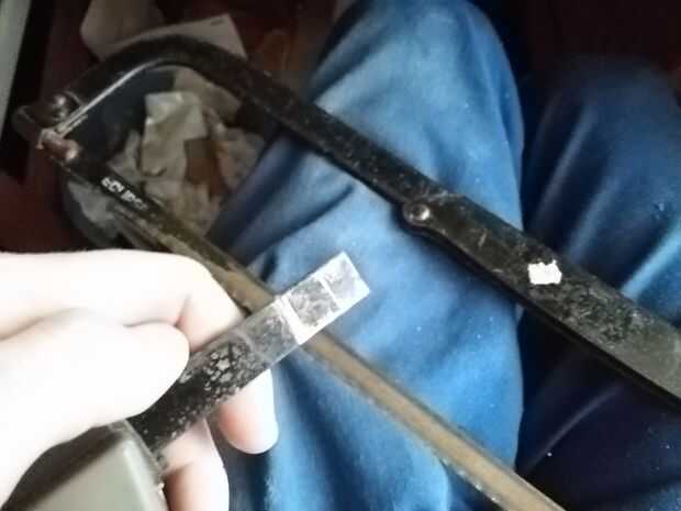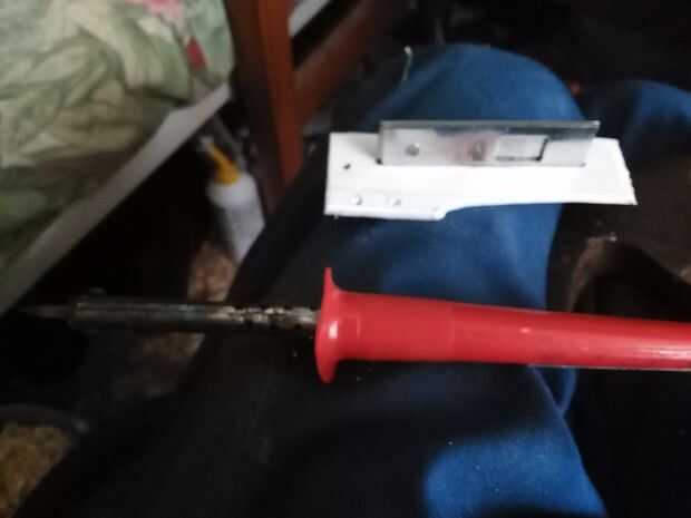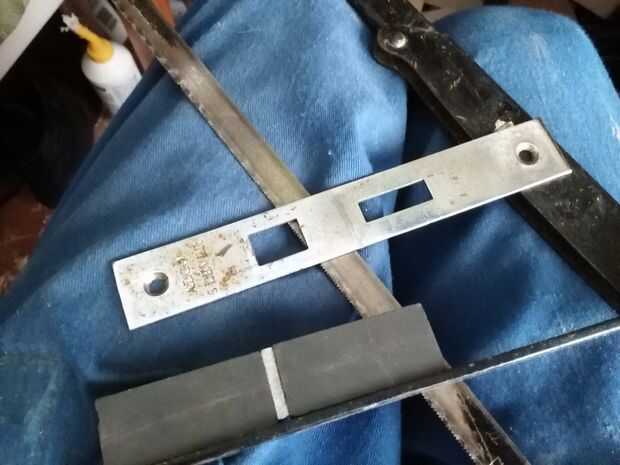 Cortar el pedazo de puerta de acero (Foto 3) por la mitad y coloca las mitades como se muestra en el cuadro 5.