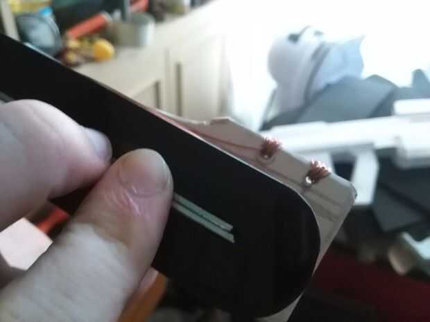 Envuelva estos bordes no aislado a través de los orificios como se muestra. A continuación, obtener algunos cables eléctricos cobre ordinario y cortar dos tiras, cada uno cerca de 450 mm de largo. Retire el aislamiento de goma el extremo 10mm o menos en ambos extremos de ambos cables. Rayar el alambre de cobre expuesto para que sea más conductor.