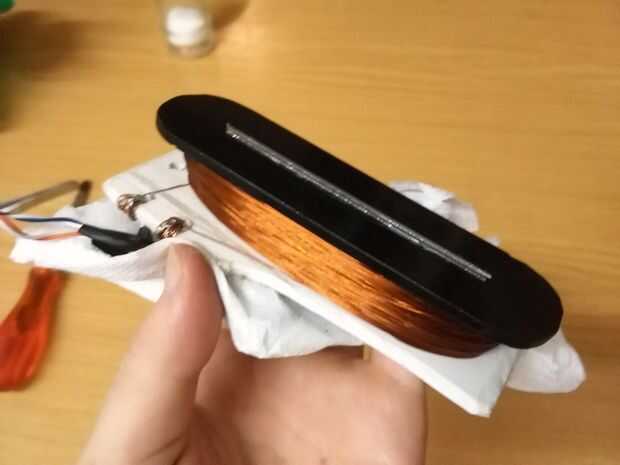 Ahora viene la parte extraña, la pastilla completa debe introducirse en un recipiente y se inundarán con cera caliente, y debe aspirado el aire de este recipiente para que la cera se tira en los boquetes entre las bobinas de cobre en la camioneta. Esto es necesario para evitar que algo que se llama "microphonics" que es básicamente no deseados siendo recogidos por una camioneta. También ayuda a aislar la pastilla entera.