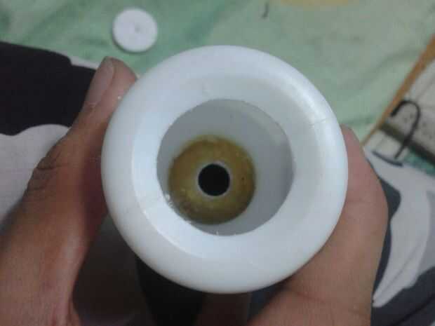 ahora para las monedas, use el segundo pic como un refence. el penique de la parte inferior es el más pequeño centavo, en el centro tenemos la parte de la botella que han librado un céntimo superior es la perra más grande... utilizando una pistola de pegamento caliente les pegué juntos. Ahora tenemos una tapa inferior extraíble, se utiliza si la botella está llena de plomo, abrirlo y agite el frasco para eliminar las puntas... arriba se muestra la tapa extraíble...