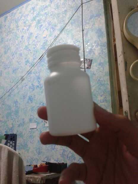 ahora se su botella de la medicina y quite la etiqueta y luego utilizando mi herramienta rotatoria casero perforé los lados de la tapa para formar un círculo. Después de eso con mi cuchillo xacto yo corte el plástico perforado para quitarlo de la tapa.