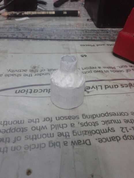 siguiente es que usted consiga la bomba y un pedazo de papel. con su papel de envolver a la bomba que se muestra arriba. con un pegamento o cinta, cinta de pegamento los lados del papel. debería verse como una última foto anterior... y luego comprobar si la boquilla de papel se ajusta a la cabeza de la botella.