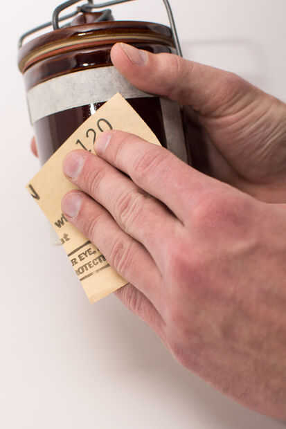 Arena de la zona que se va a cubrir de pintura con papel de grano arena 120. Nota: Si el papel de la arena es muy grueso, los arañazos se muestran a través de la pintura. Por el contrario, si el papel de la arena es muy fino, la pintura no se adherirá correctamente.